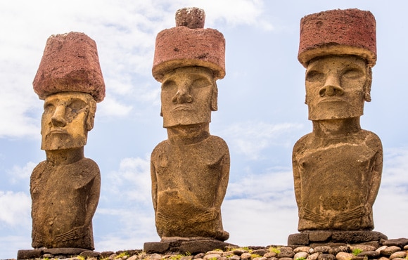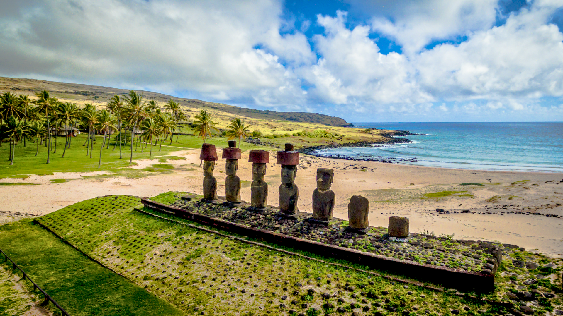 Isla de Pascua es conocida mundialmente debido a sus gigantescas esculturas talladas en piedra volcánica llamadas Moai, que representan y rinden homenaje a los ancestros.